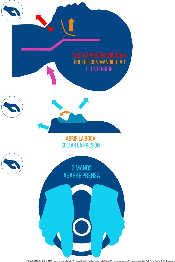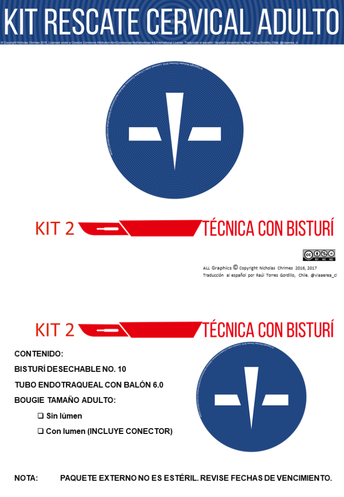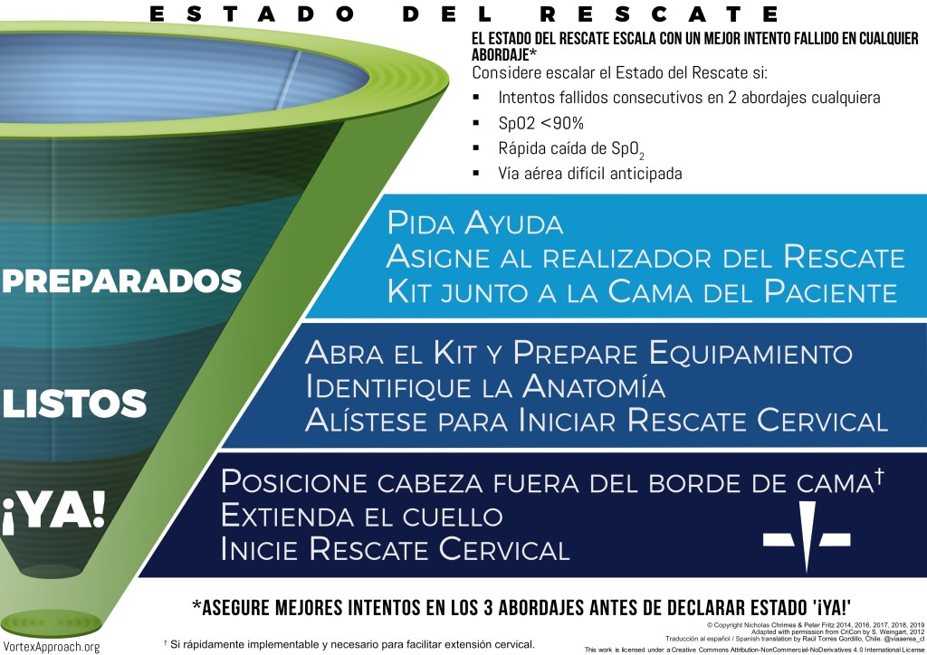 Individualiza las diferentes etapas en la preparación para un rescate cervical (por ejemplo, una cricotirotomía quirúrgica). Útil en asistir en el paso más difícil de una situación de este tipo, la toma de la decisión de proceder y cómo hacerlo.